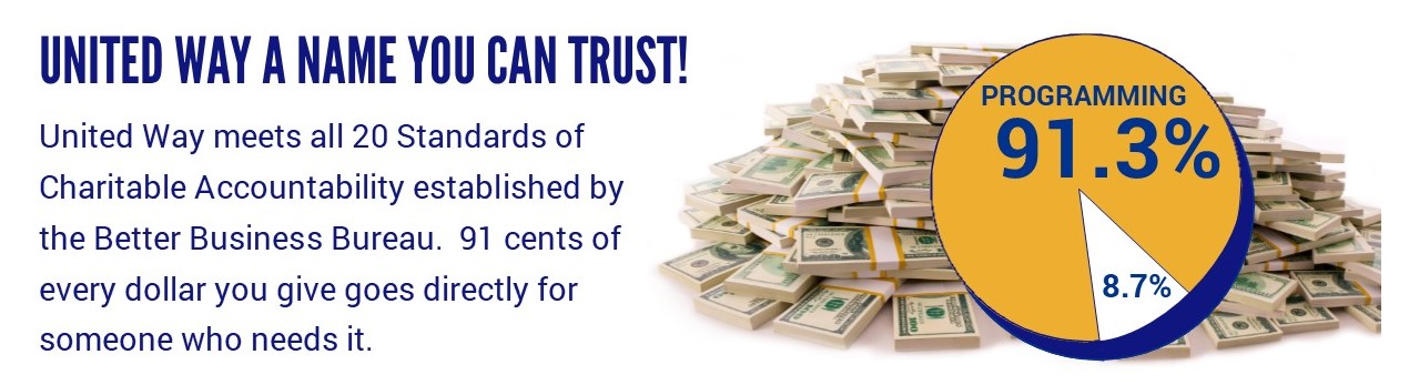 In an effort to be as accountable as possible, United Way is open and transparent when it comes to its financial records. Our annual audit is conducted by an independent firm (Holbrook & Manter, CPAs). These documents, as well as our annual IRS Tax Form 990, are both available for review by clicking the links below.